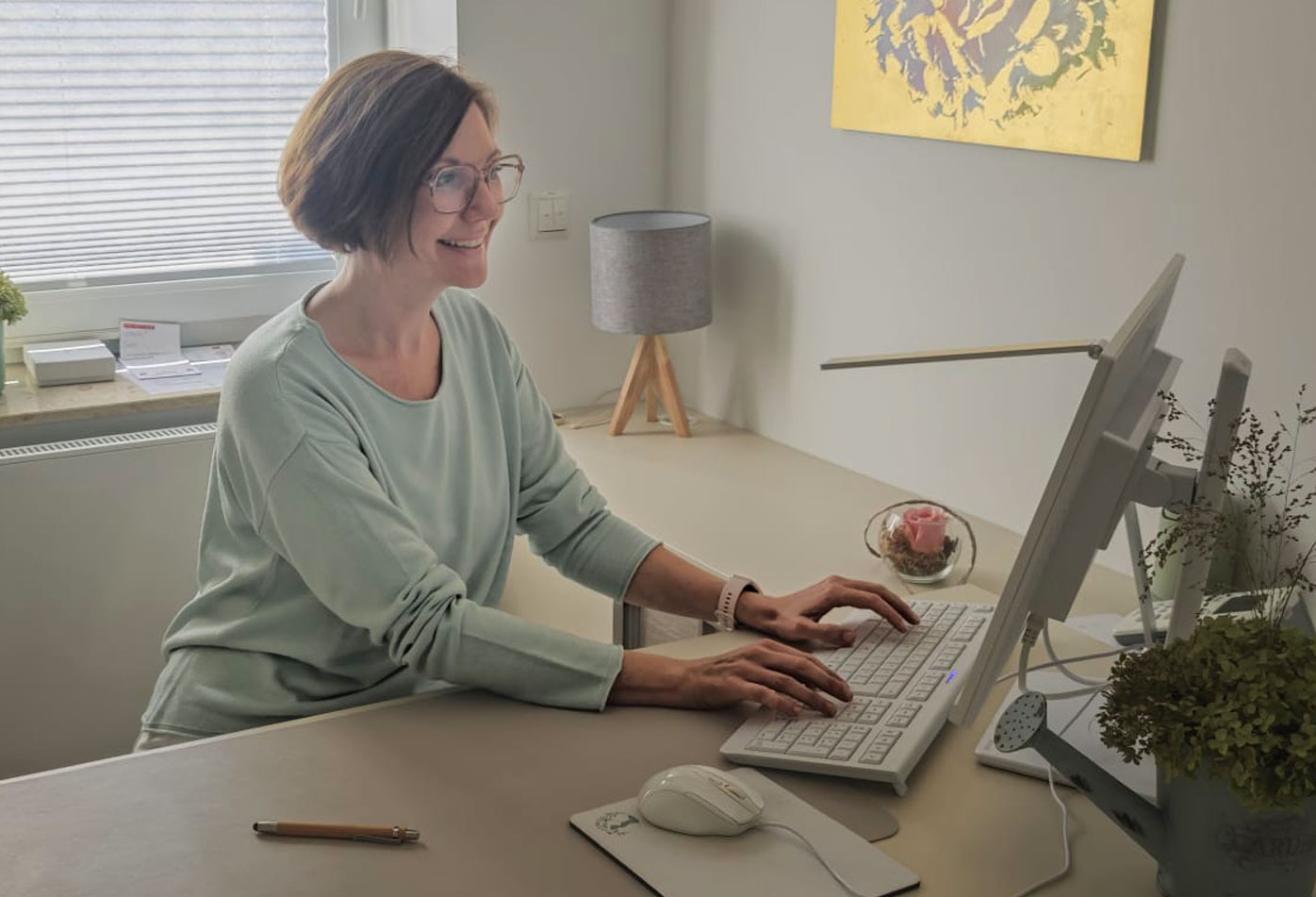 Ich bin für Sie im Einsatz am Empfang, beim CTG, im Labor & Praxismanagement.
